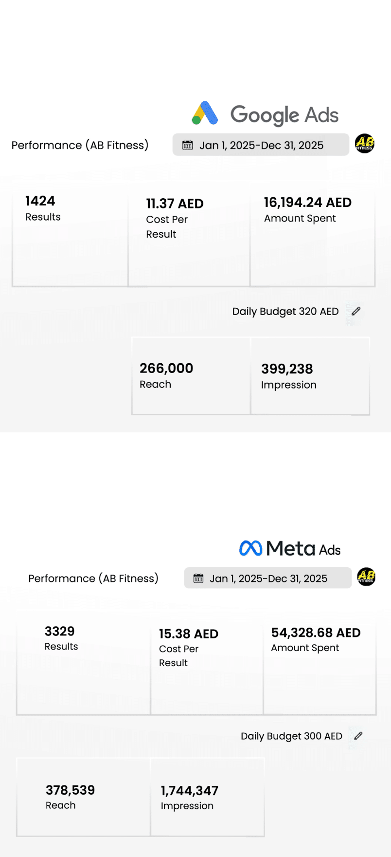 Within 12 months, AB Fitness’s digital campaigns increased brand visibility, generated qualified membership inquiries, and converted online engagement into active members across the UAE.
