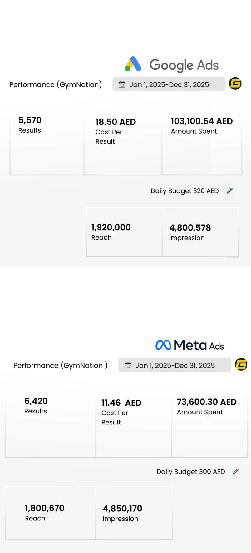 Through a comprehensive digital marketing strategy, GymNation has established a strong and consistent online presence, leading to increased customer engagement and the successful opening of new branches across the UAE. GymNation continues to collaborate with us to enhance digital performance and achieve sustainable growth.