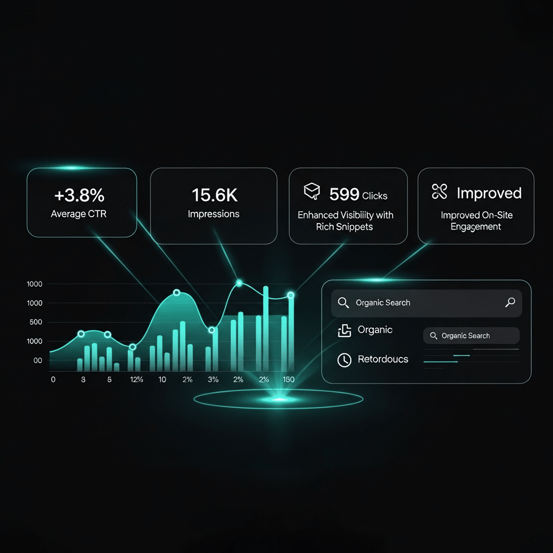 +3.8% Average CTR 15.6K Impressions 599 Clicks Enhanced Visibility with Rich Snippets Improved On-Site Engagement