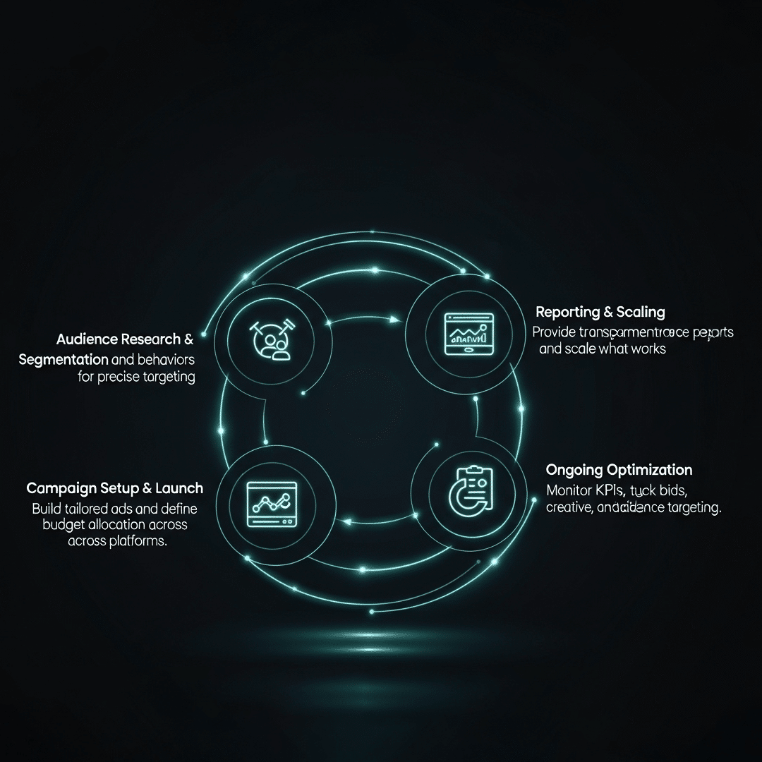 Ongoing Optimization Monitor KPIs, tweak bids, creative, and audience targeting