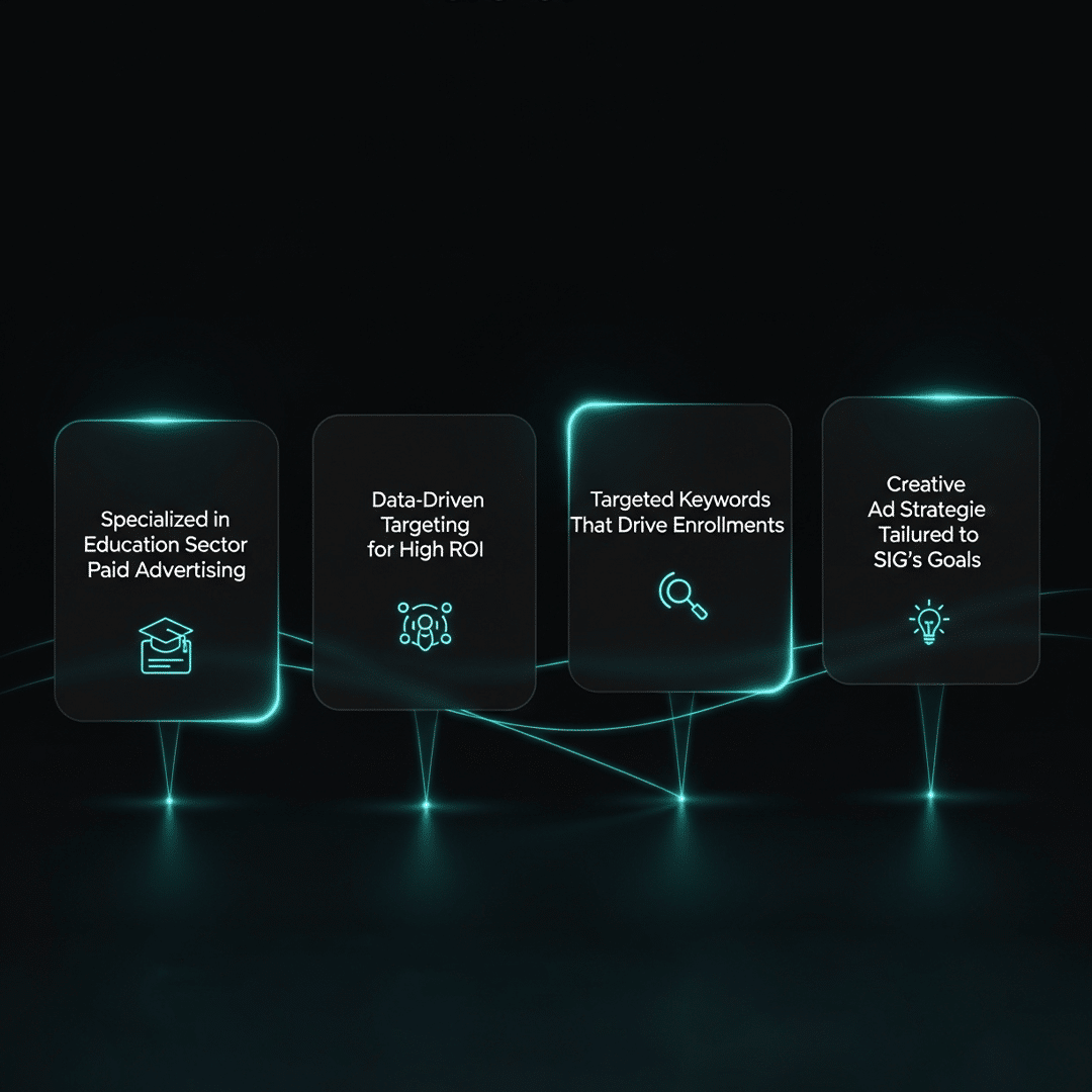 We implemented strategic ad targeting across Google, Facebook, and Instagram, combined with compelling creative and split-testing. Within months, SIG’s paid ads delivered significantly higher engagement and conversions, helping them connect with more prospective students efficiently.